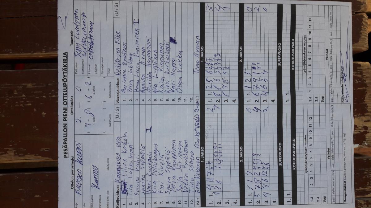 | 441287 | 1.5.2017 | Kannus | Reisjärvi | 2-0 (9-8, 6-2) | näytä |