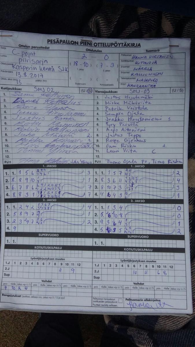 | 454601 | 20.5.2017 18:00 | SMJ03 | YKV | 2-0 (6-1, 19-2) | näytä |