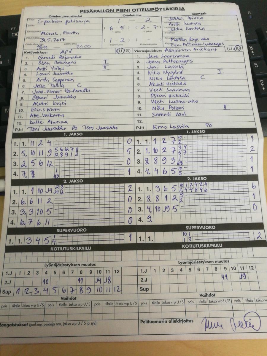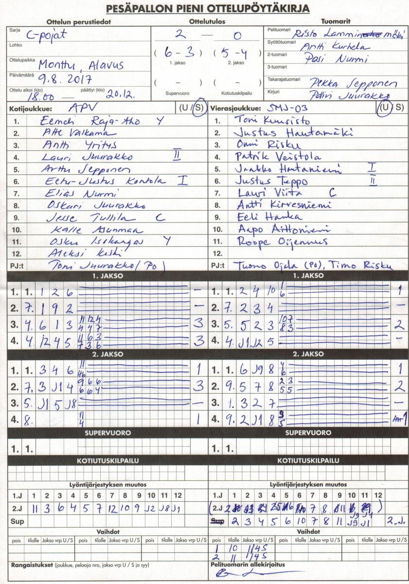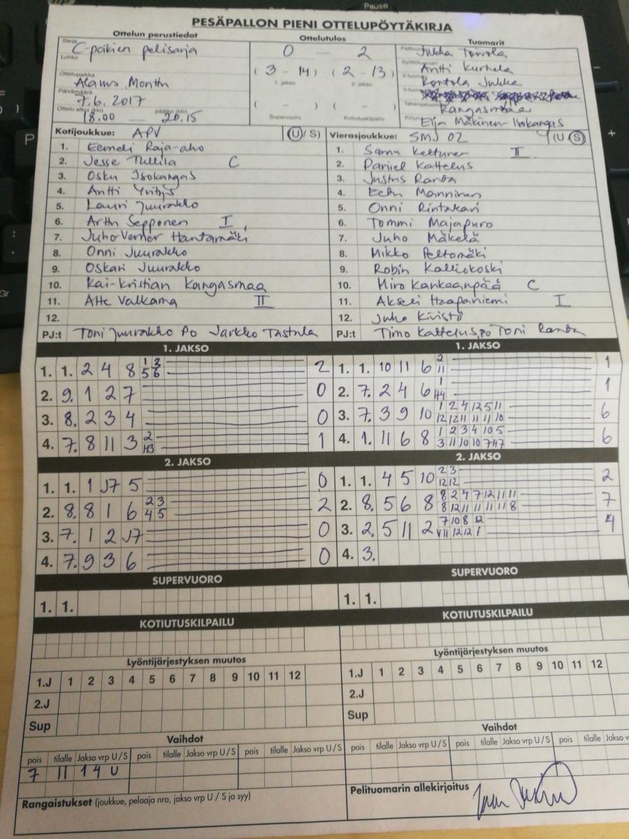 | 454708 | 20.5.2017 18:00 | APV | SMJ02 | 0-2 (3-14, 2-13) | näytä |