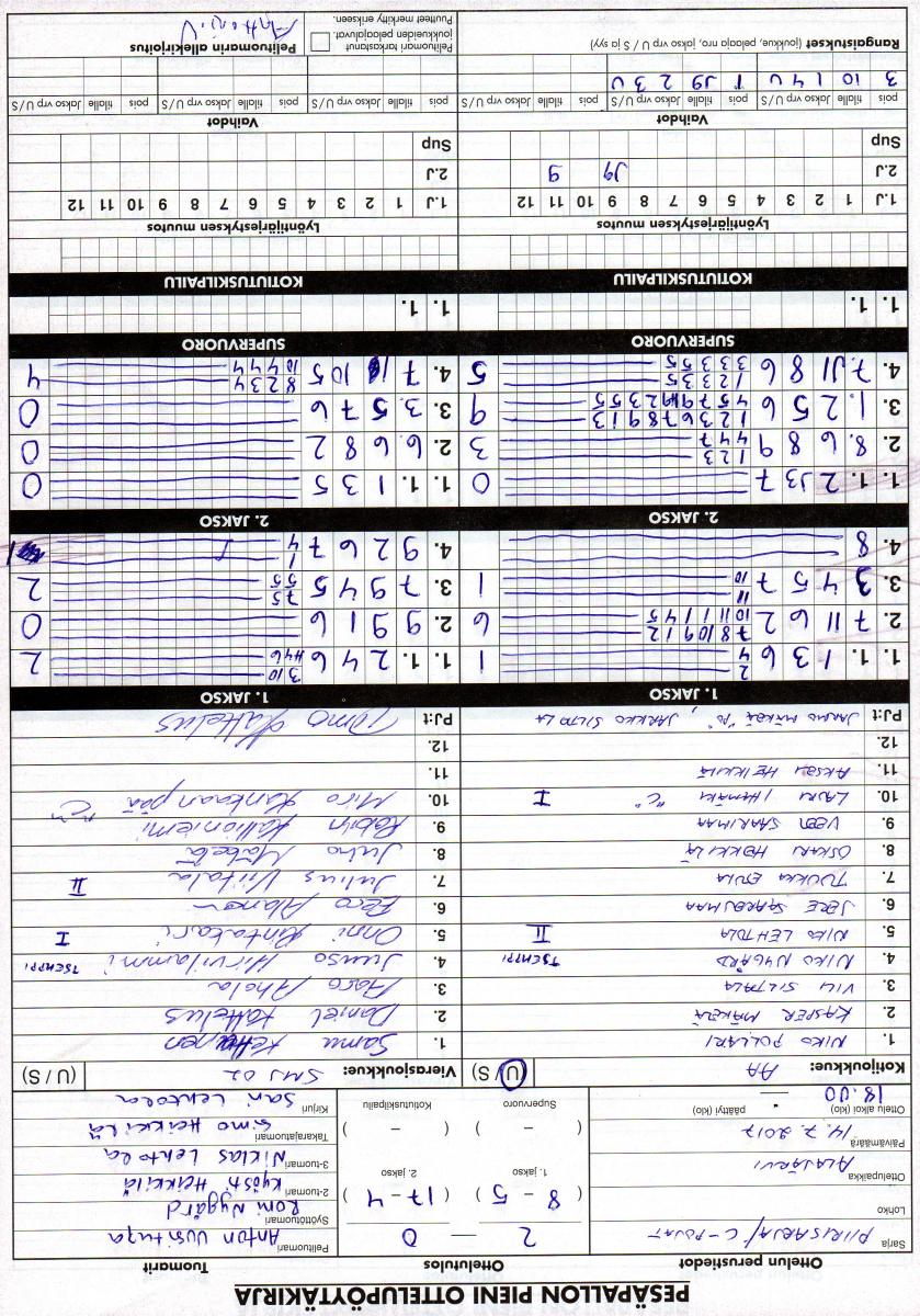 | 454698 | 20.5.2017 18:00 | KuKu | SMJ02 | 1-2 (10-8, 1-12, 1-5) | näytä |