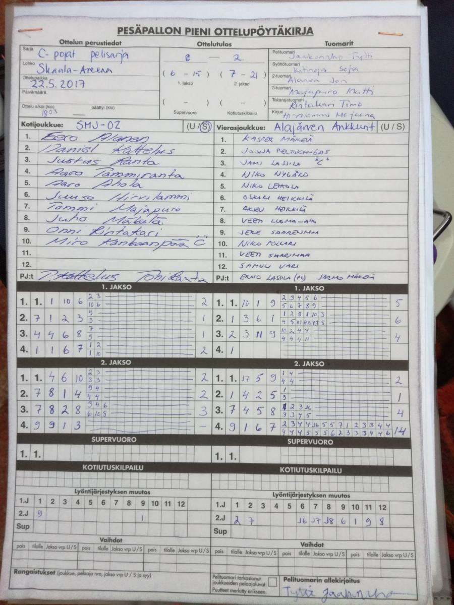 | 454711 | 20.5.2017 18:00 | AA | SMJ02 | 2-0 (8-5, 17-4) | näytä |