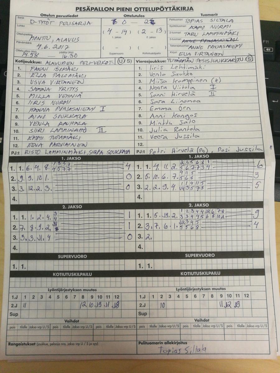 | 457129 | 28.6.2017 18:00 | YPJ | VM | 1-2 (9-10, 8-7, 0-7) | näytä |