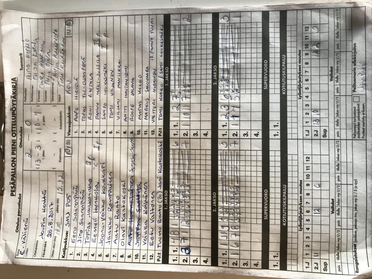 | 521783 | 20.8.2017 18:00 | SMJ05 punainen | KoU | 2-0 (13-3, 10-4) | näytä |