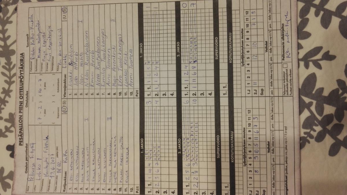 | 459761 | 26.6.2017 18:00 | Liekki | SMJ08 musta | 0-2 (2-27, 6-19) | näytä |