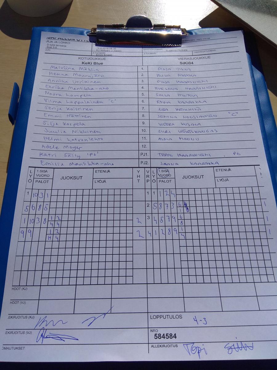 | 584584 | 14.6.2018 08:30 | K3 Niittyaro 2 (keski) | KeKi Blue | SiKi04 | 4-3 | D-tytöt leirisarja - Pronssiottelu: KeKi White | näytä |