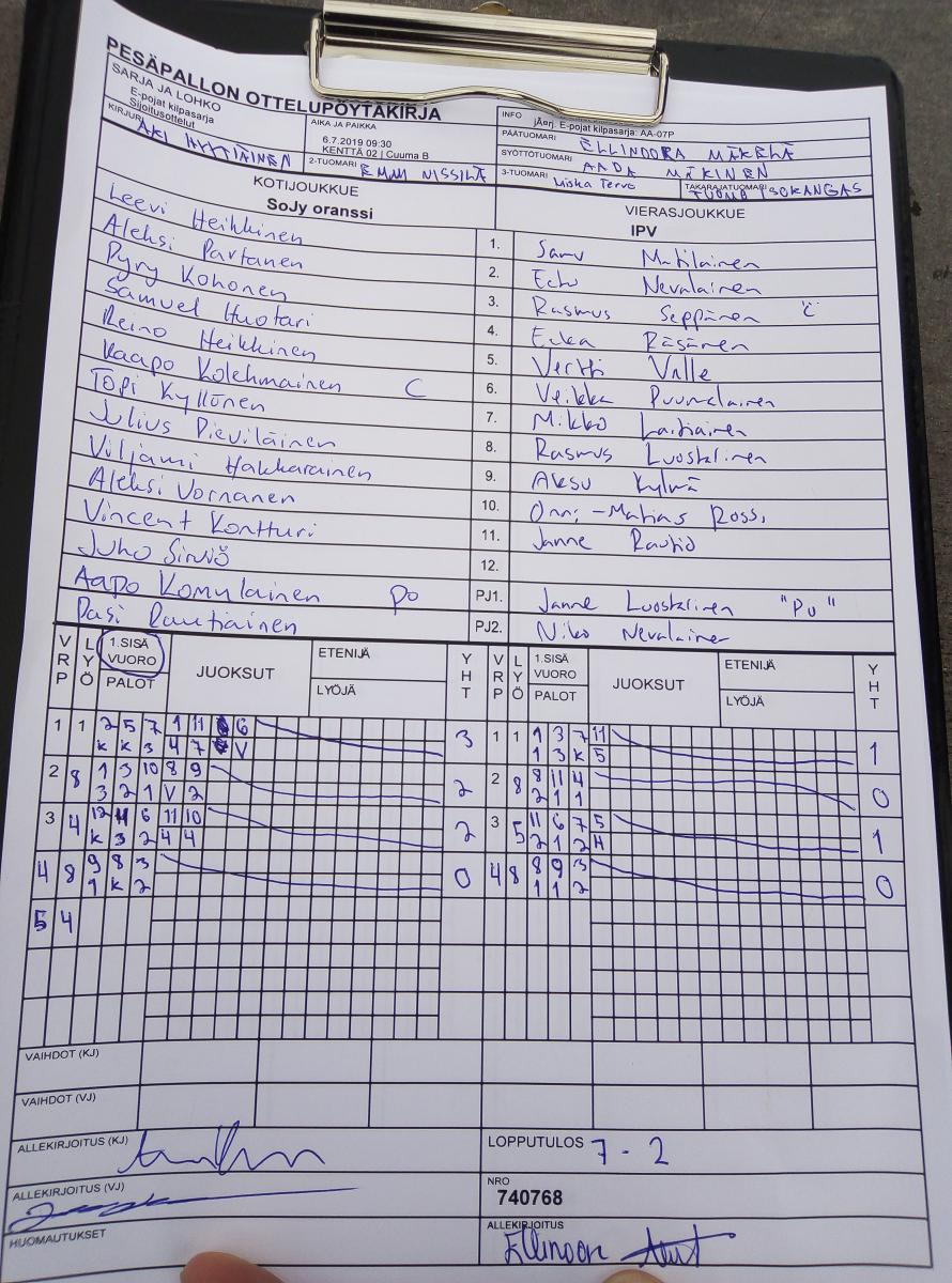 | 740768 | 6.7.2019 09:30 | KENTTÄ 02 | Cuuma B | SoJy oranssi | IPV | 7-2 | E-pojat kilpasarja: AA-07P | näytä |