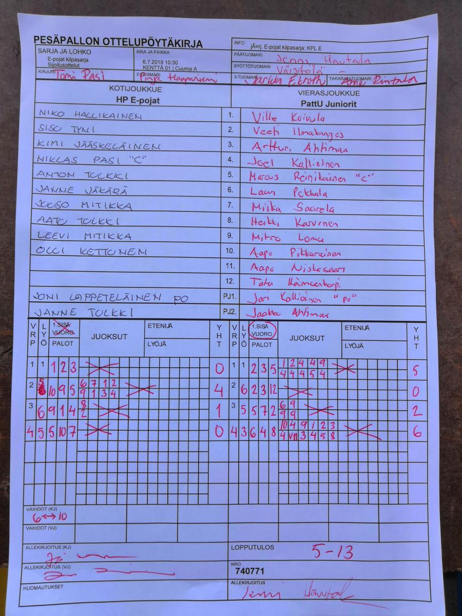 HP E-pojat - PattU Juniorit, voitot 0-1