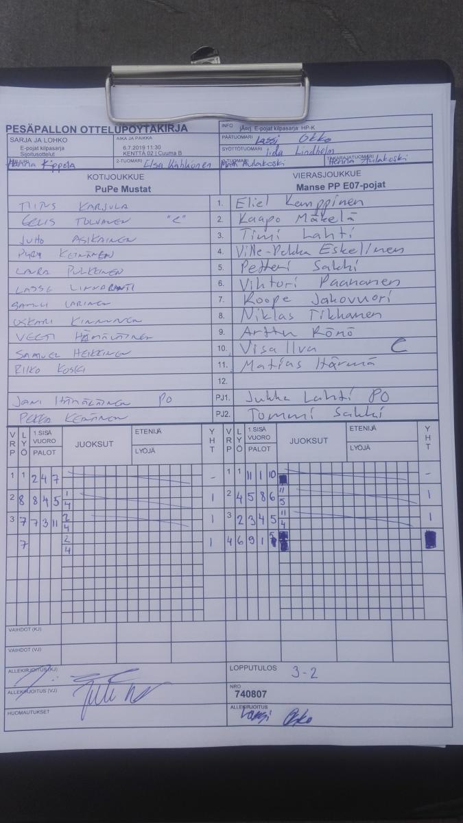 | 740807 | 6.7.2019 11:30 | KENTTÄ 02 | Cuuma B | PuPe Mustat | Manse PP E07-pojat | 3-2 | E-pojat kilpasarja: HP-K | näytä |