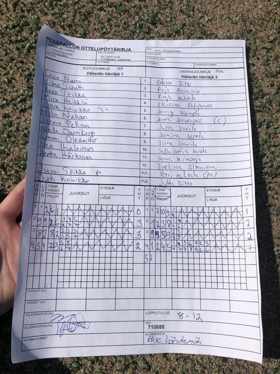 | 710688 | 20.7.2019 12:30 | T13 Niittyaro, Takakenttä | HP | PeKi | 8-12 | Leiriorganisaatio | näytä |
