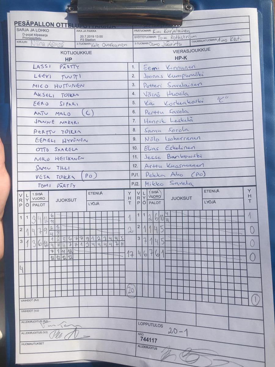 | 744117 | 20.7.2019 13:00 | P3 Stadion | HP | HP-K | 20-1 | Leiriorganisaatio | näytä |