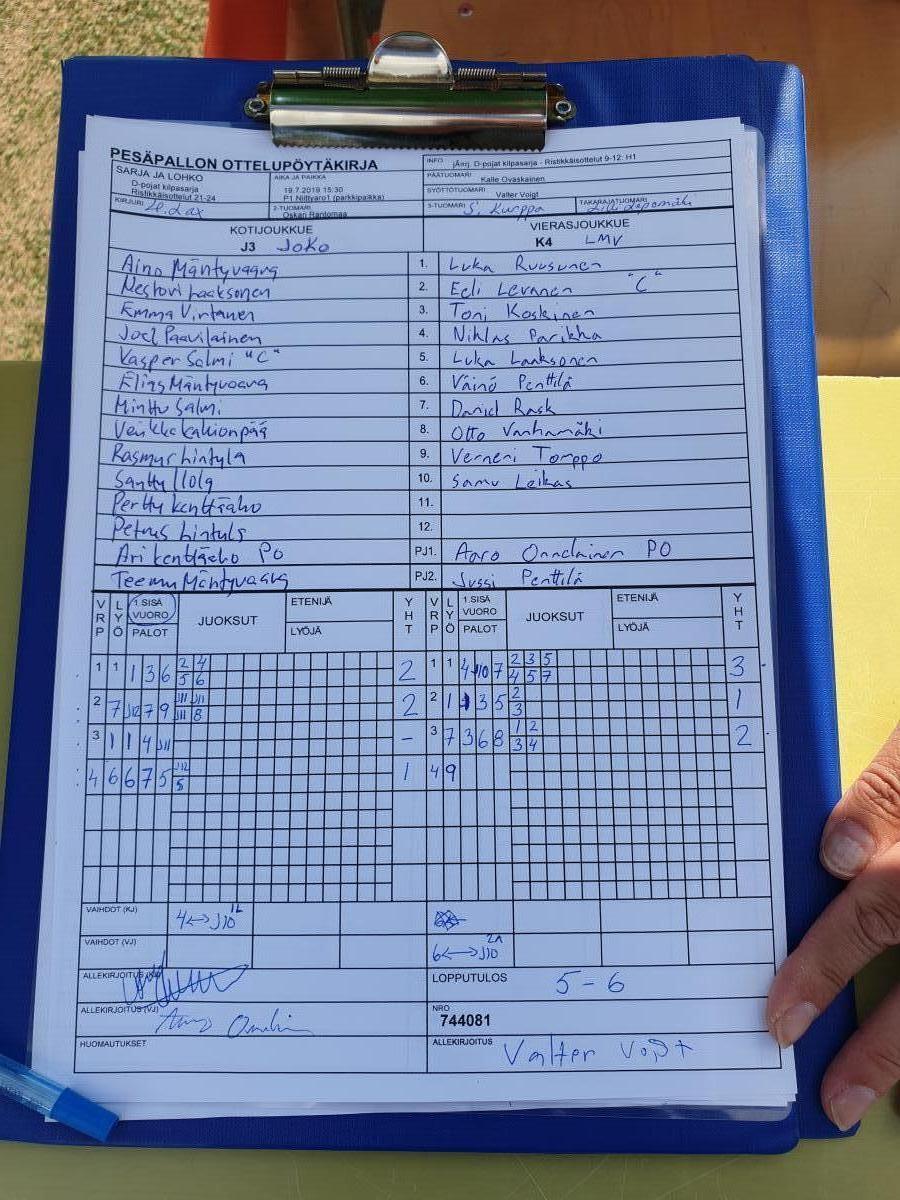 | 744081 | 19.7.2019 15:30 | P1 Niittyaro1 (parkkipaikka) | JoKo juniorit D-pojat | LMV | 5-6 | D-pojat kilpasarja: UPV Dp | näytä |