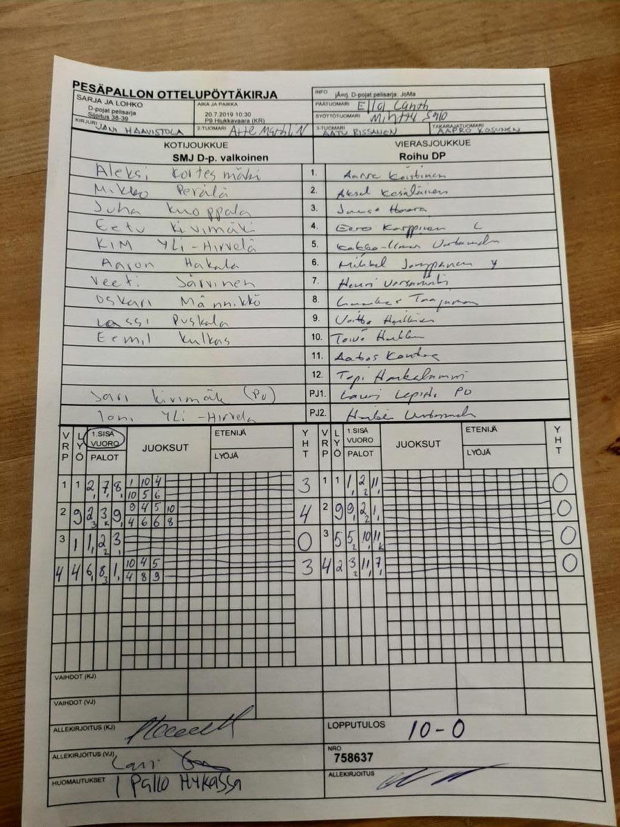 SMJ D-p. valkoinen - Roihu DP, voitot 1-0