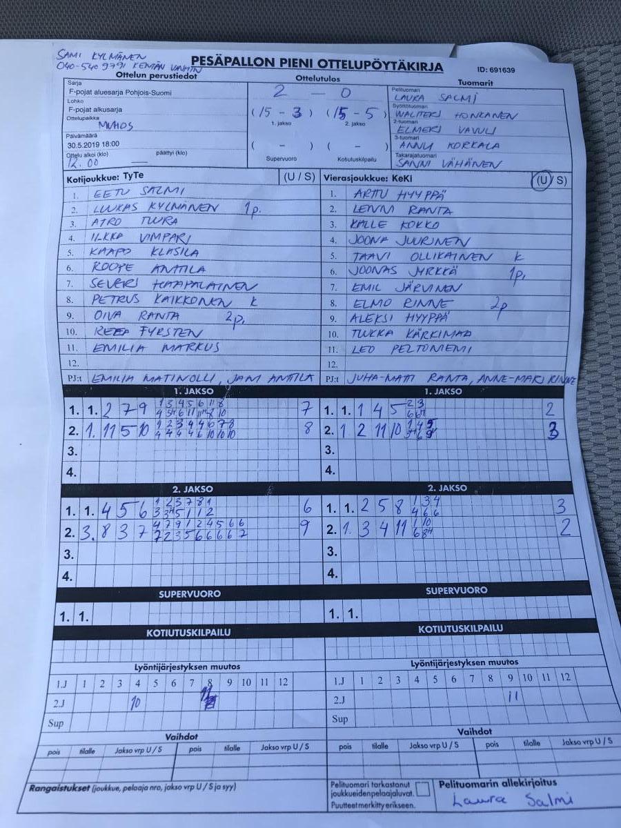 | 691985 | 16.5.2019 | TyTe | IiU keltainen | 2-0 (12-8, 12-5) | näytä |