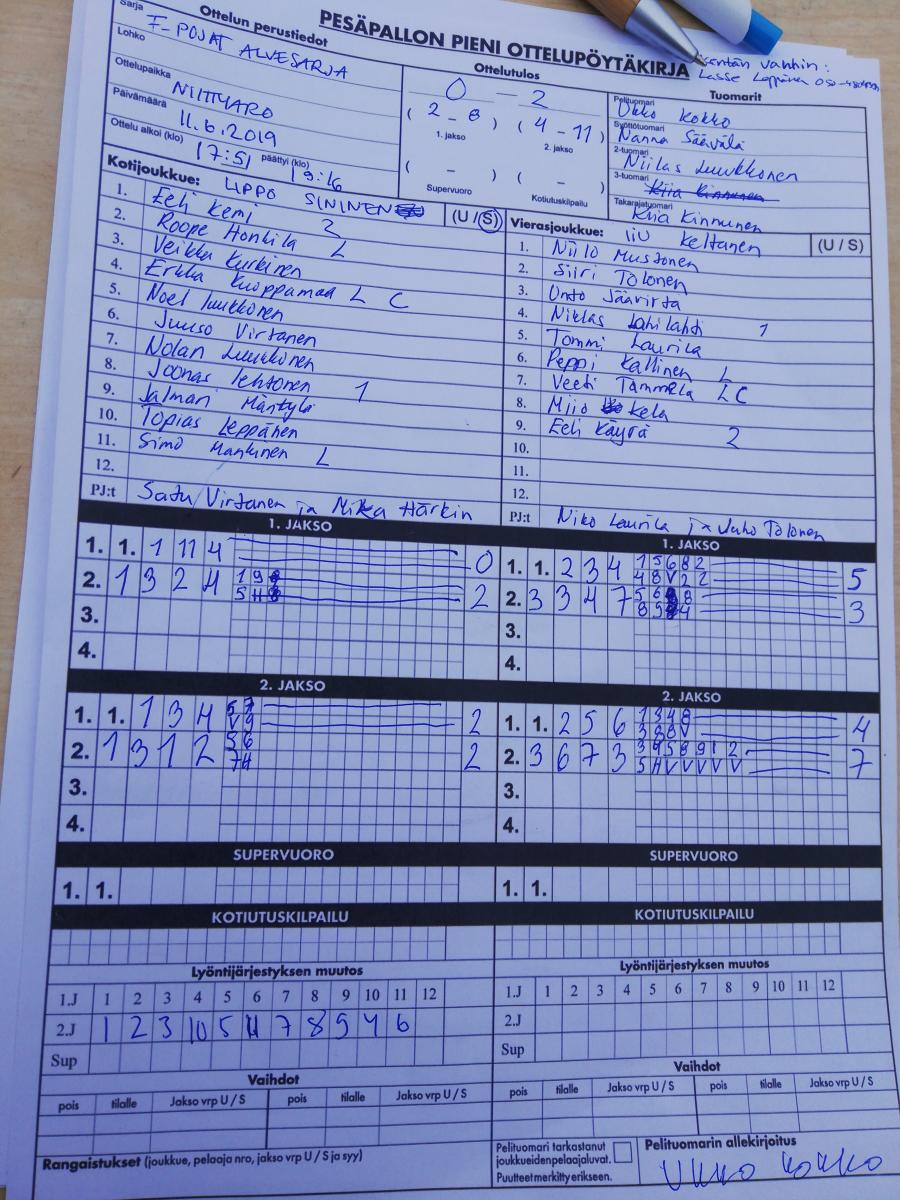 | 691684 | 11.6.2019 | Lippo sininen | IiU keltainen | 0-2 (2-8, 4-11) | näytä |