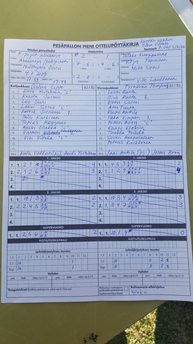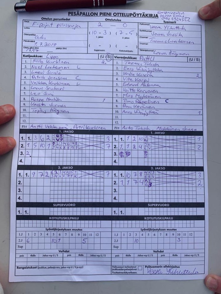 | 691888 | 1.7.2019 | Lippo valkoinen | PattU | 2-0 (10-3, 7-5) | näytä |