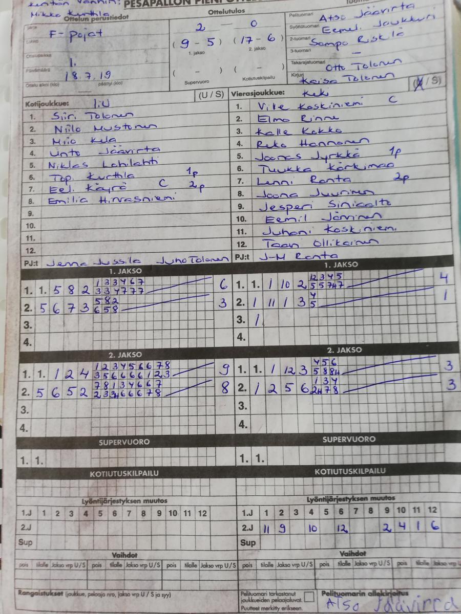 | 691956 | 18.7.2019 | IiU keltainen | KeKi | 2-0 (9-5, 17-6) | näytä |