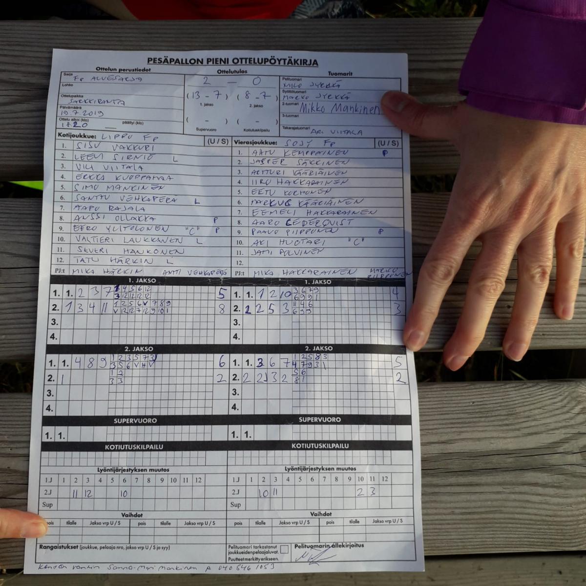 | 703103 | 19.7.2019 | Lippo musta | SoJy | 2-0 (13-7, 8-7) | näytä |