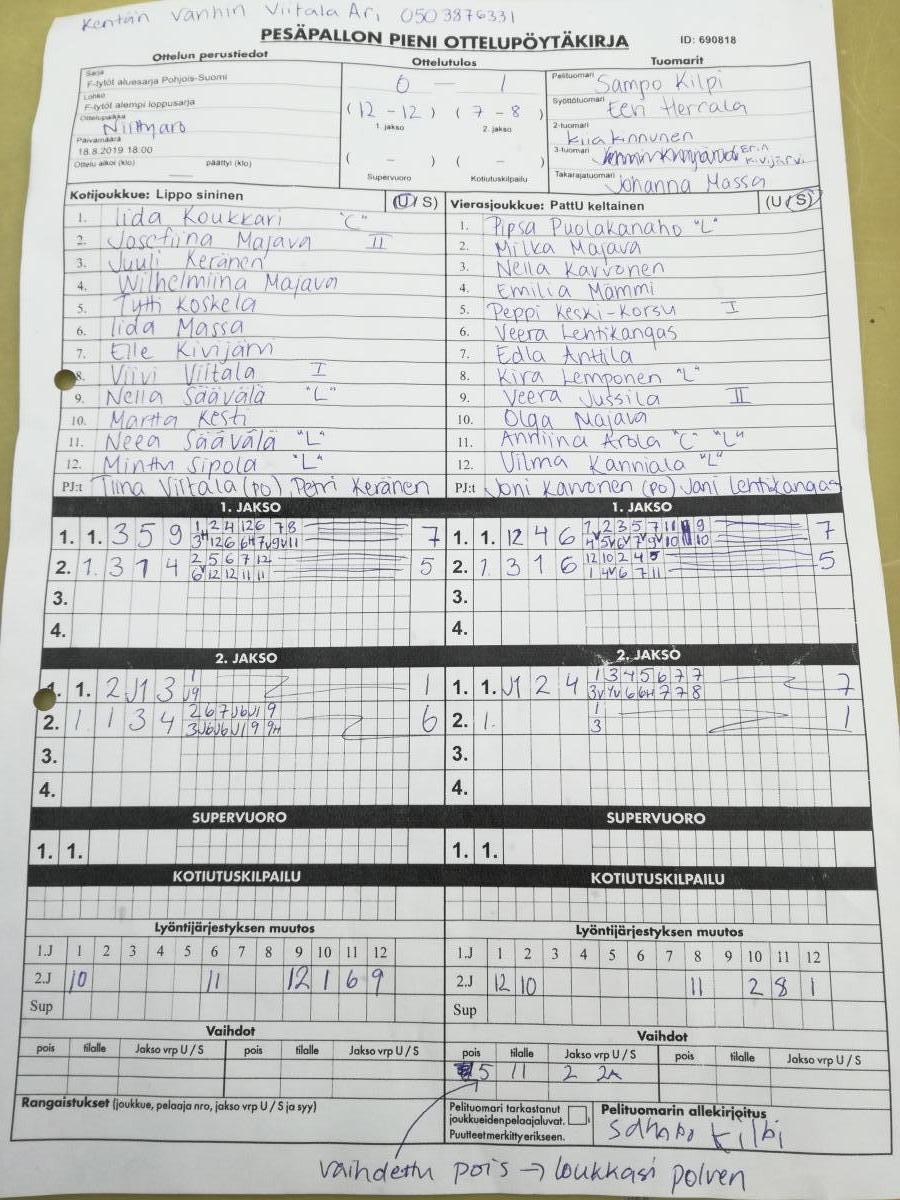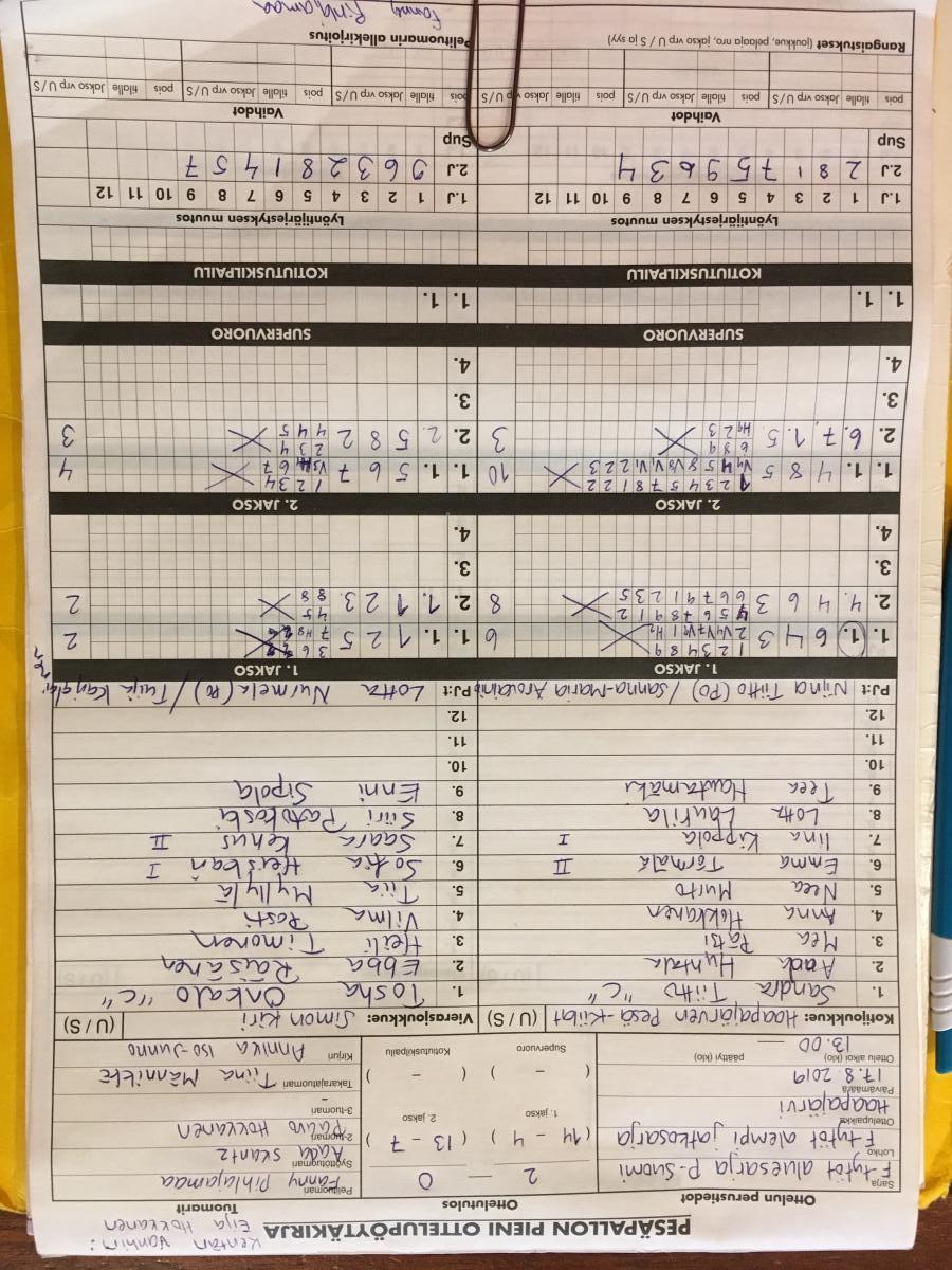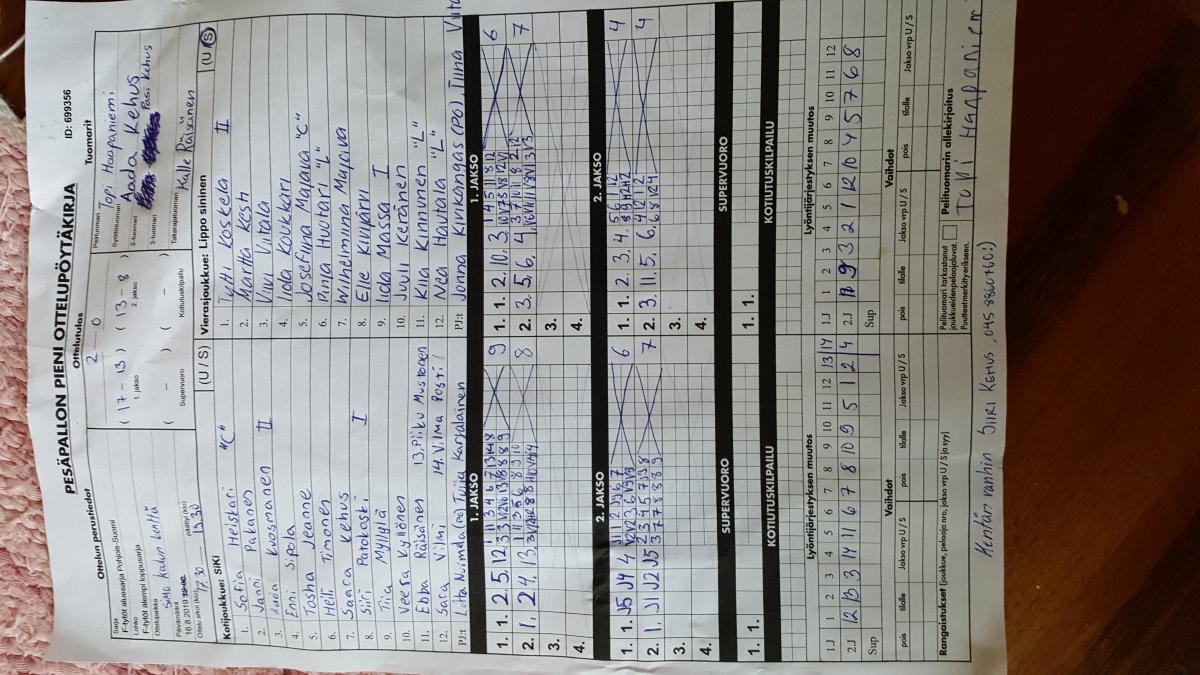 | 690782 | 7.8.2019 | Haapajärvi | Lippo sininen | 1-0 (21-5, 7-7) | näytä |