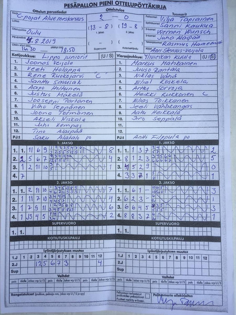 | 694461 | 4.8.2019 | Lippo | Ylivieska | 2-0 (13-8, 19-8) | näytä |