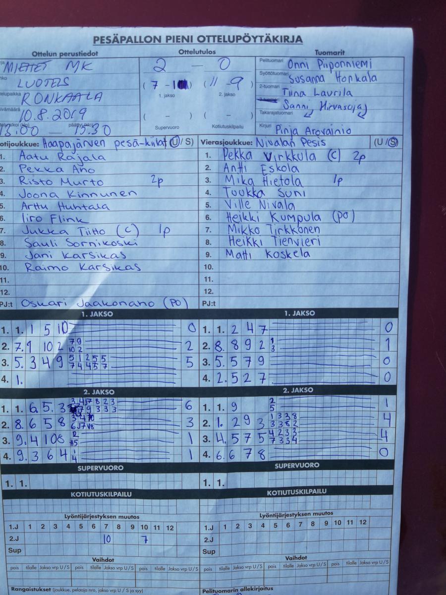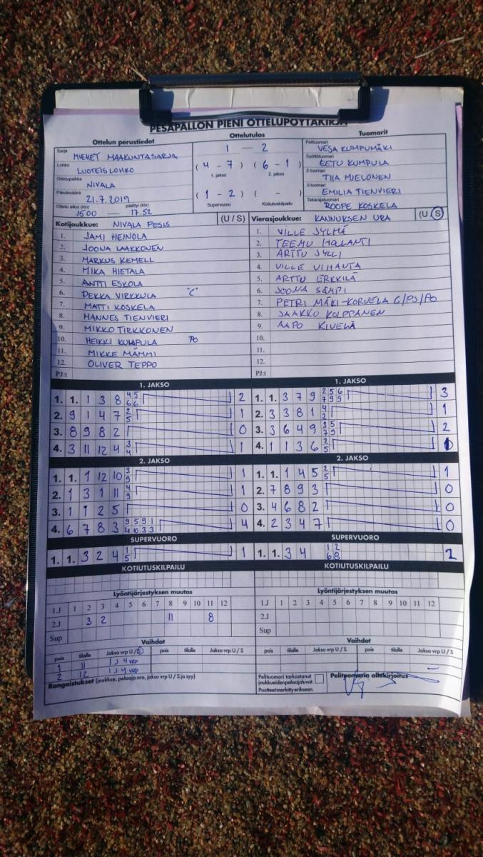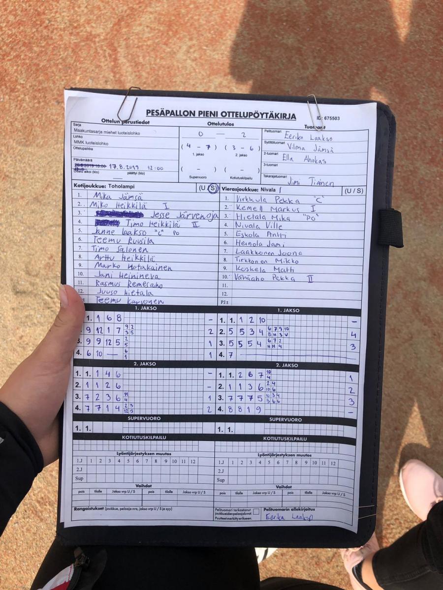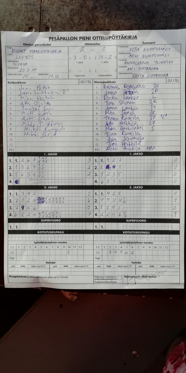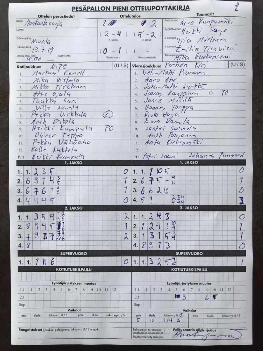 | 675354 | 20.7.2019 | Nivala | Toholampi | 2-0 (7-0, 13-2) | näytä |