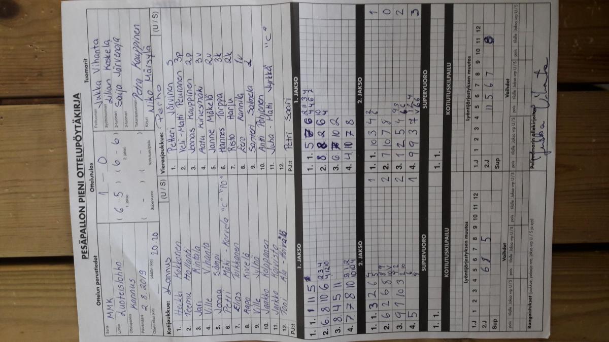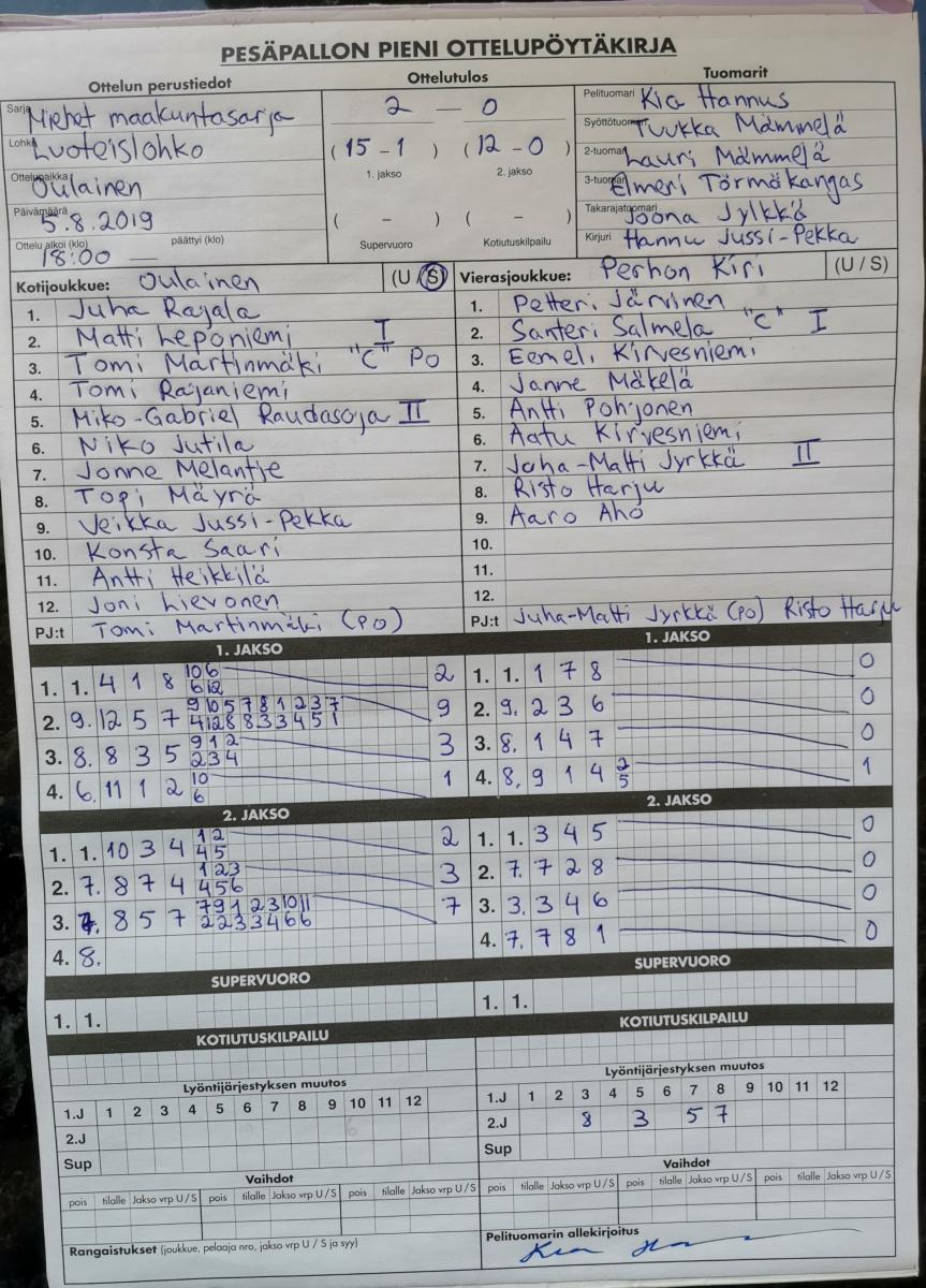 | 675383 | 5.8.2019 | Oulainen | Perho | 2-0 (15-1, 12-0) | näytä |