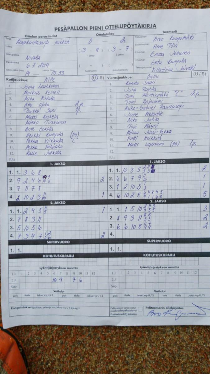 | 675574 | 27.7.2019 | Oulainen | Nivala | 2-0 (7-4, 4-3) | näytä |