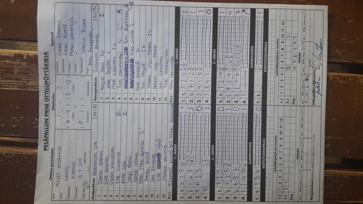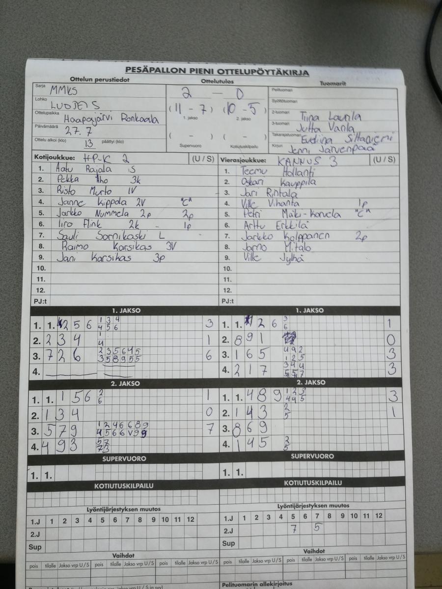 | 675477 | 29.7.2019 | Haapajärvi | Kannus | 2-0 (11-7, 10-5) | näytä |