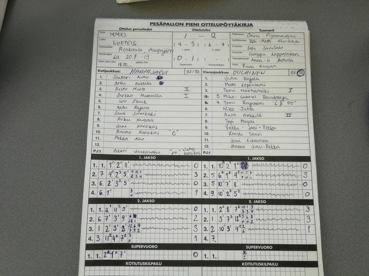 | 675448 | 20.7.2019 | Haapajärvi | Oulainen | 1-2 (4-3, 6-7, 0-1) | näytä |