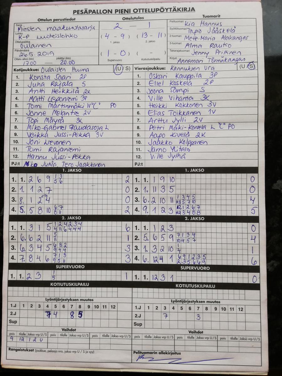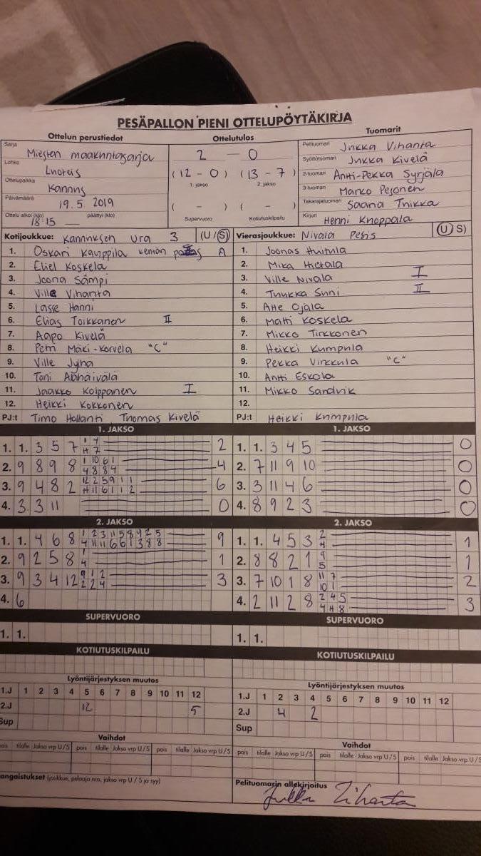 | 675451 | 19.5.2019 | Kannus | Nivala | 2-0 (12-0, 13-7) | näytä |