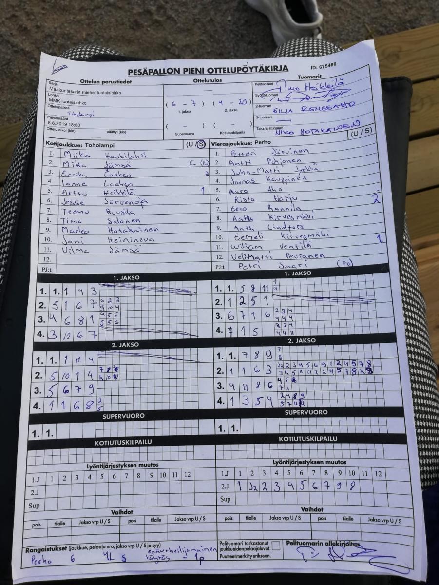 | 675480 | 8.6.2019 | Toholampi | Perho | 0-2 (6-7, 4-20) | näytä |