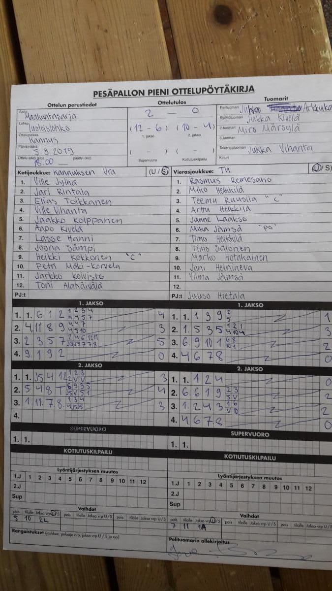 | 675516 | 5.8.2019 | Kannus | Toholampi | 2-0 (12-6, 10-4) | näytä |