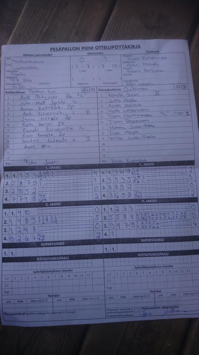 | 675532 | 10.8.2019 | Perho | Oulainen | 0-1 (7-7, 7-19) | näytä |