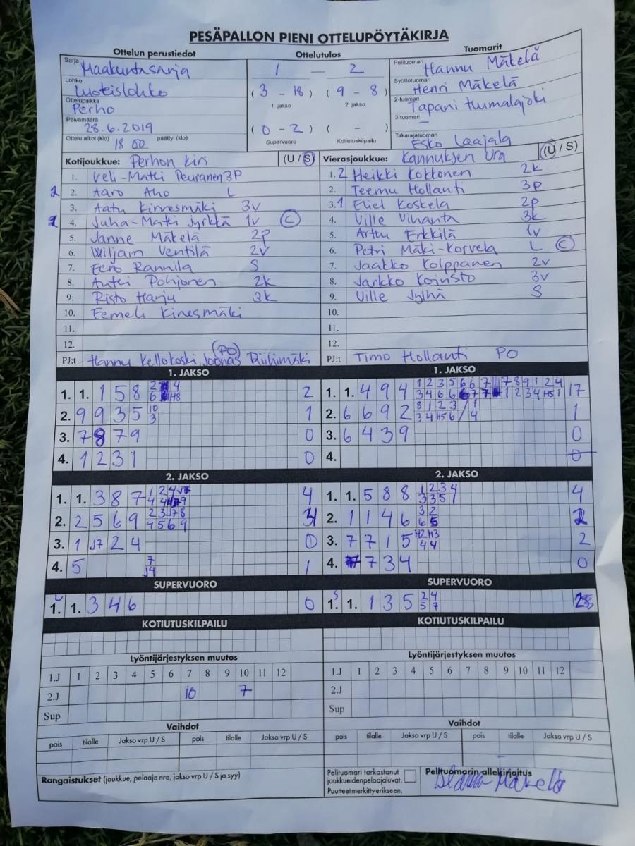 | 675558 | 28.6.2019 | Perho | Kannus | 1-2 (3-18, 9-8, 0-2) | näytä |