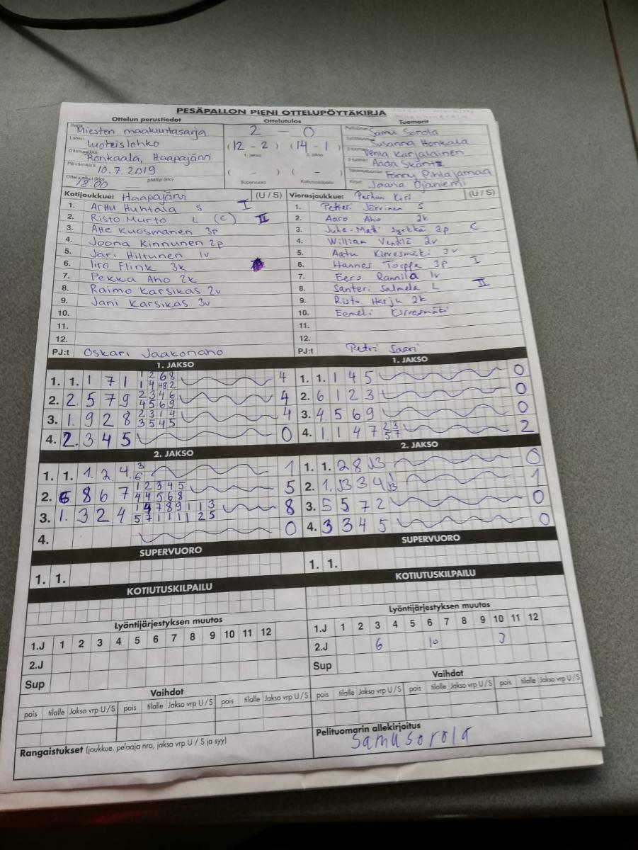 | 675561 | 10.7.2019 | Haapajärvi | Perho | 2-0 (12-2, 14-2) | näytä |