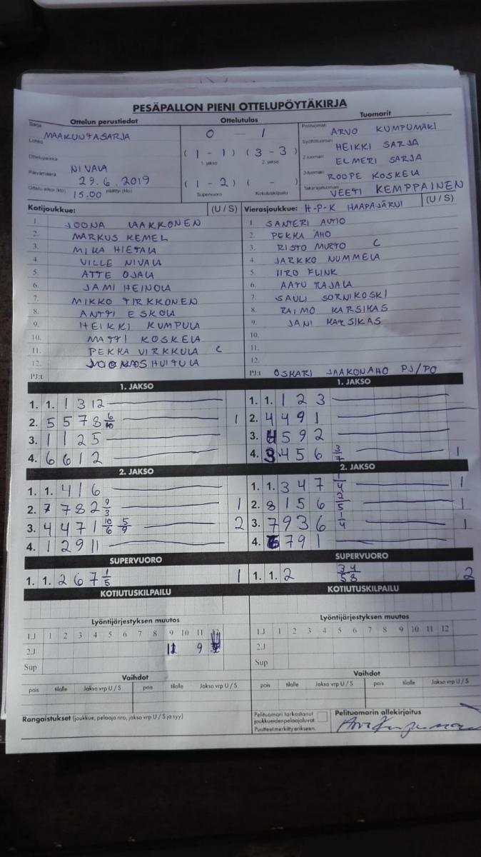 | 675613 | 29.6.2019 | Nivala | Haapajärvi | 0-1 (1-1, 3-3, 1-2) | näytä |