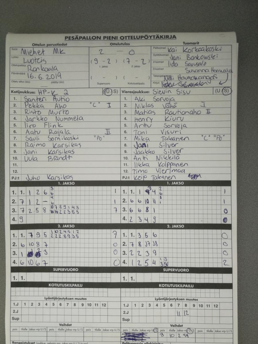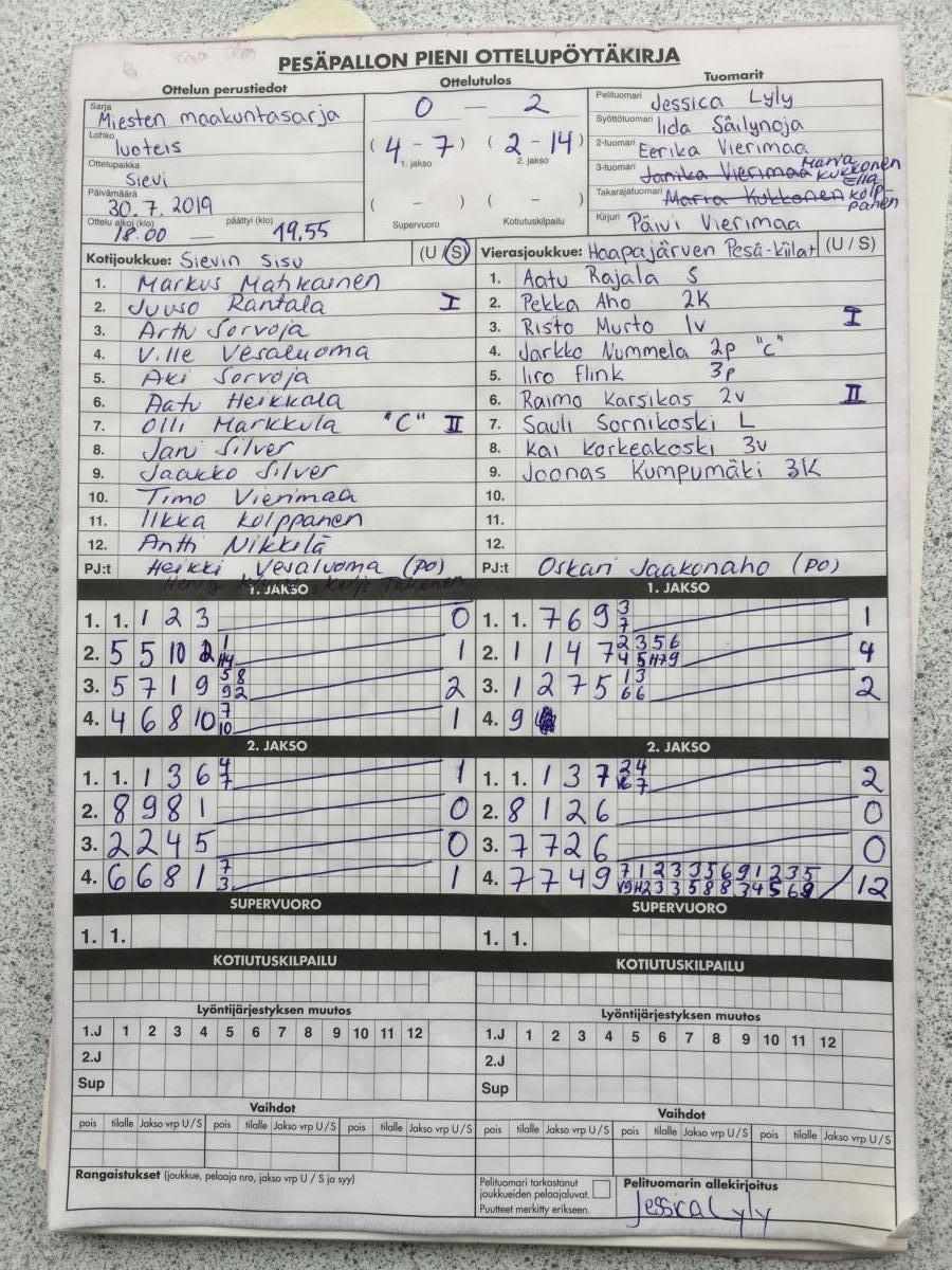 | 699123 | 30.7.2019 | Sievi | Haapajärvi | 0-2 (4-7, 2-14) | näytä |