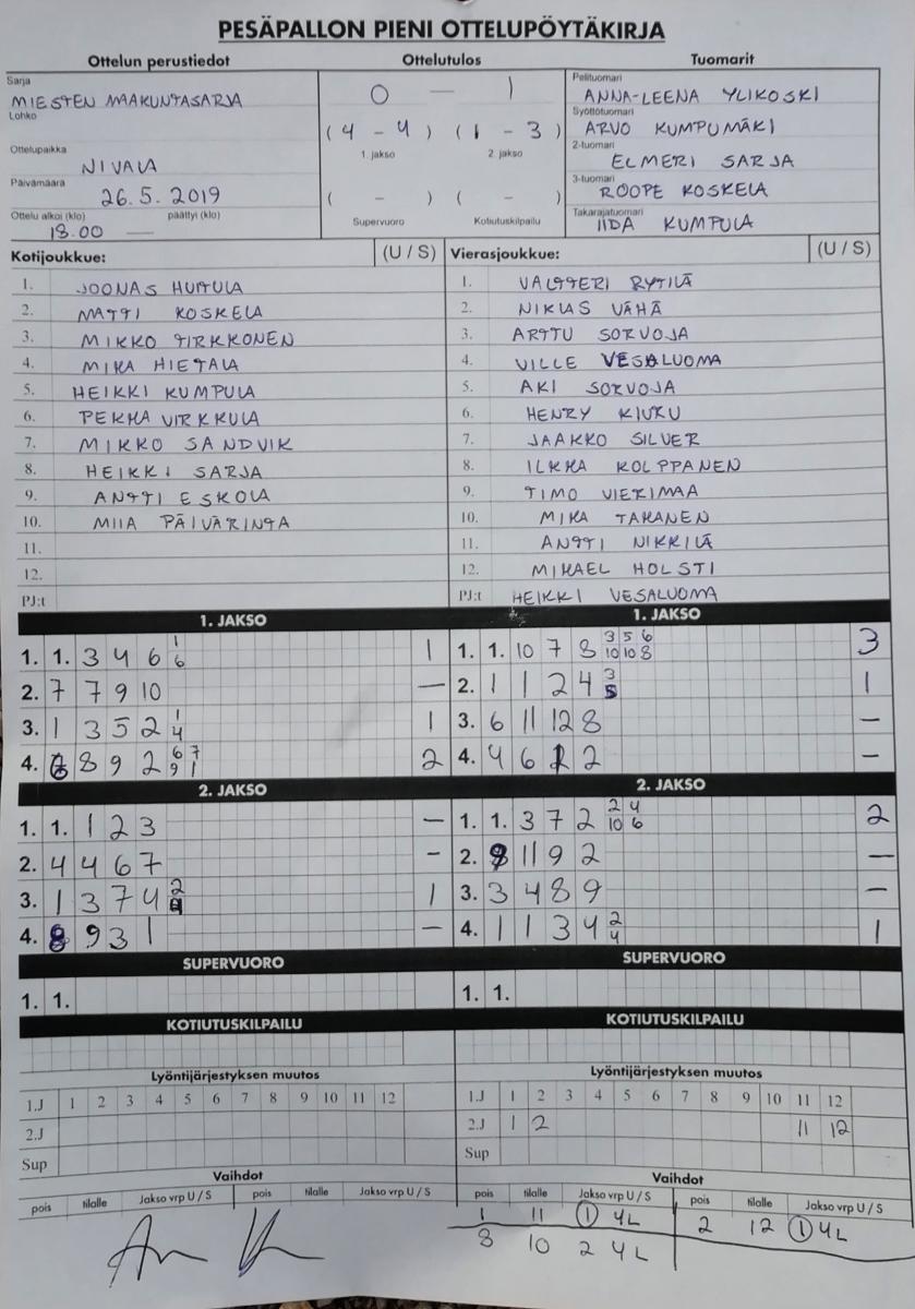 | 699071 | 26.5.2019 | Nivala | Sievi | 0-1 (4-4, 1-3) | näytä |