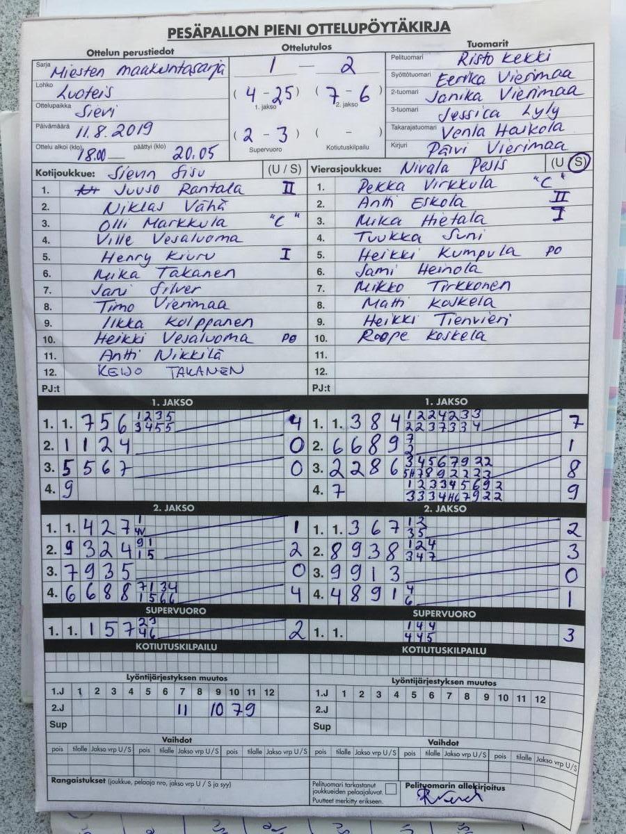 | 699107 | 11.8.2019 | Sievi | Nivala | 1-2 (4-25, 7-6, 2-3) | näytä |