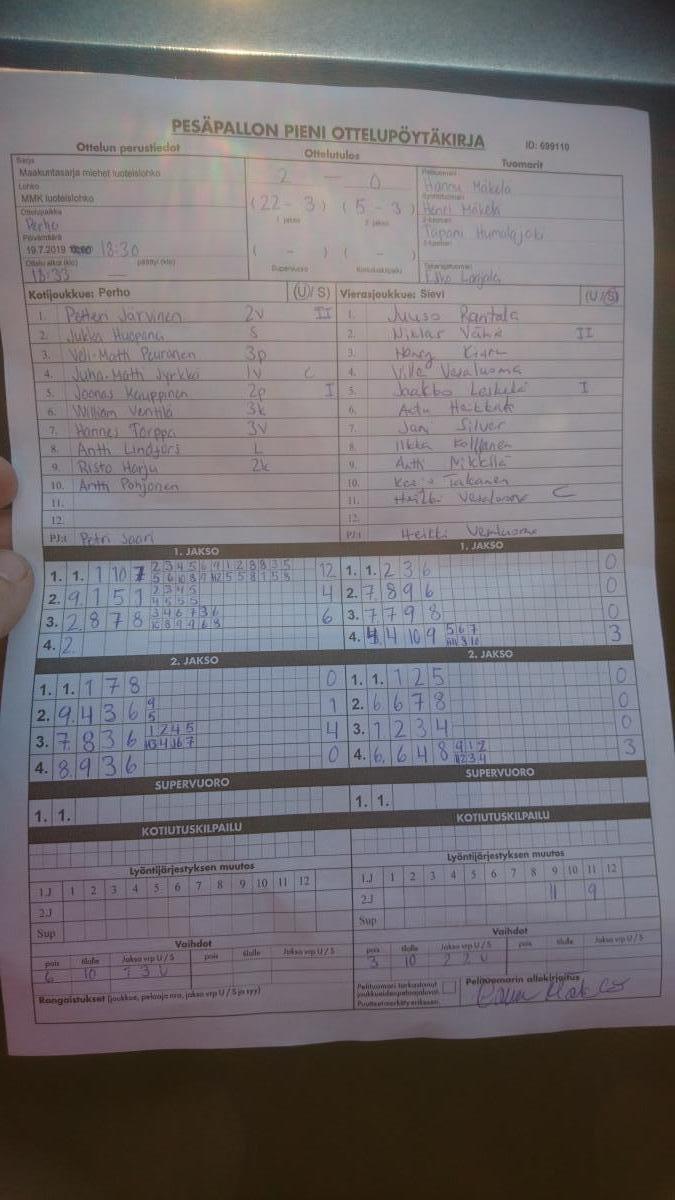 | 699110 | 19.7.2019 | Perho | Sievi | 2-0 (22-3, 5-3) | näytä |