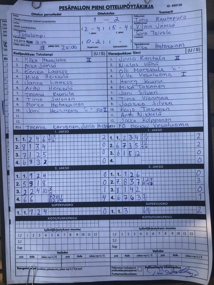 | 699042 | 3.6.2019 | Sievi | Toholampi | 0-2 (6-7, 8-12) | näytä |