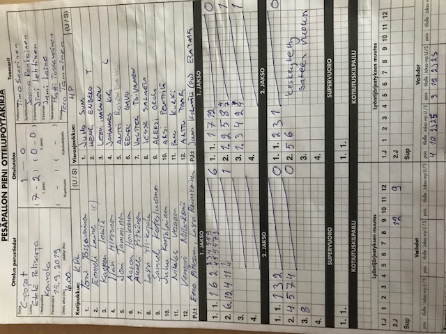 | 773120 | 16.9.2019 15:42 | UPV Cp | Espoo D | 2-0 (1-0, 1-0) | näytä |