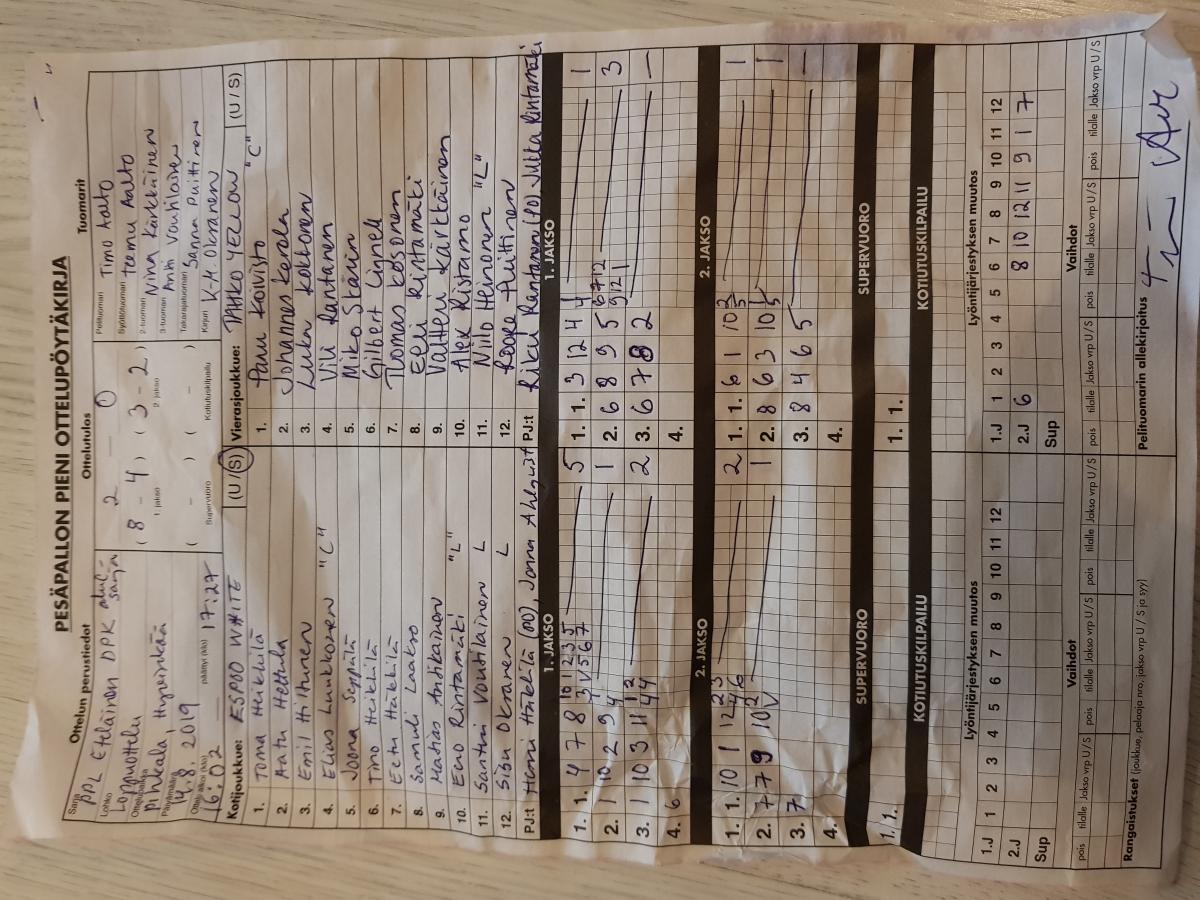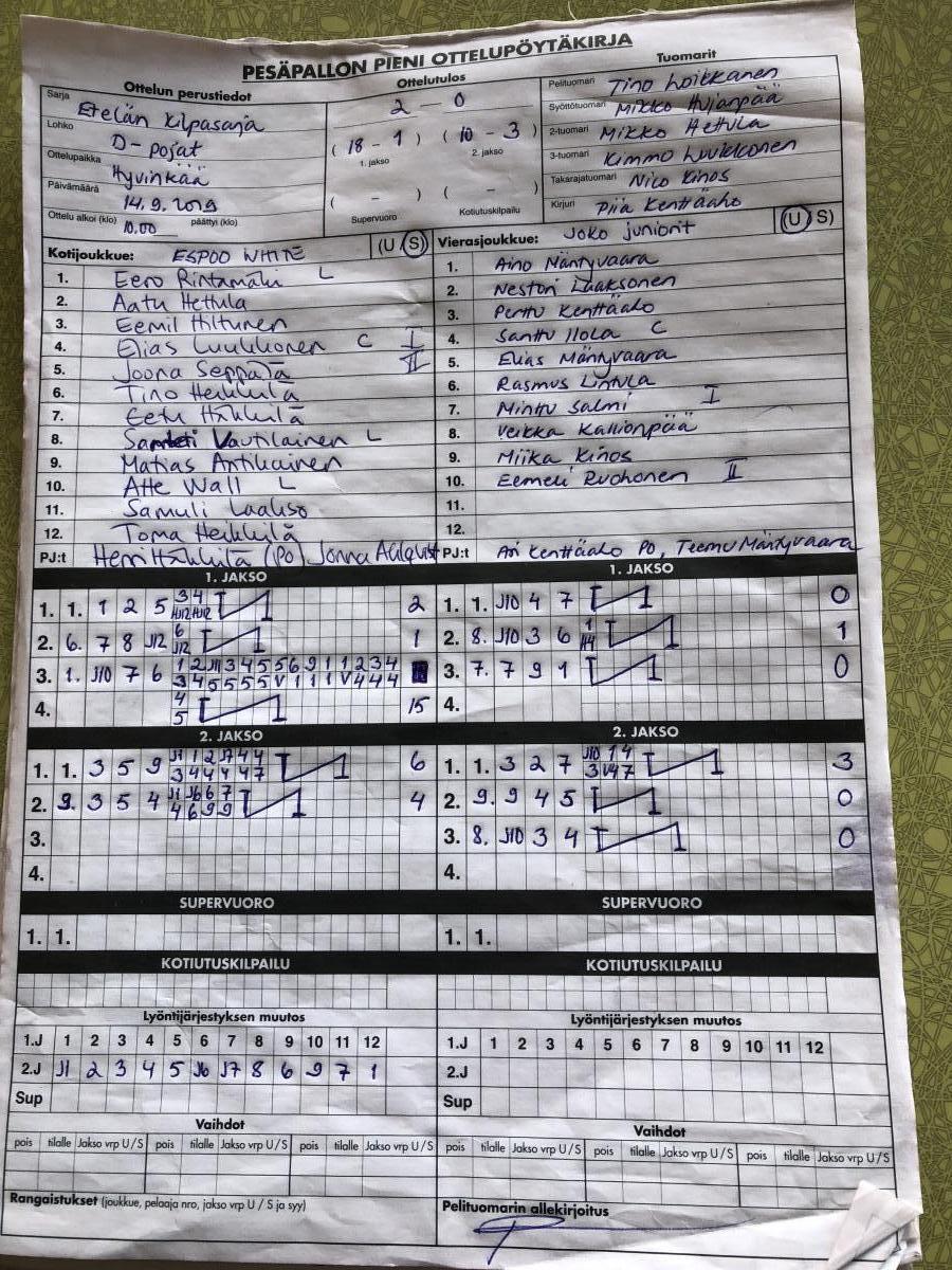 Espoo White - Hyvinkään Tahko Yellow, voitot 1-0