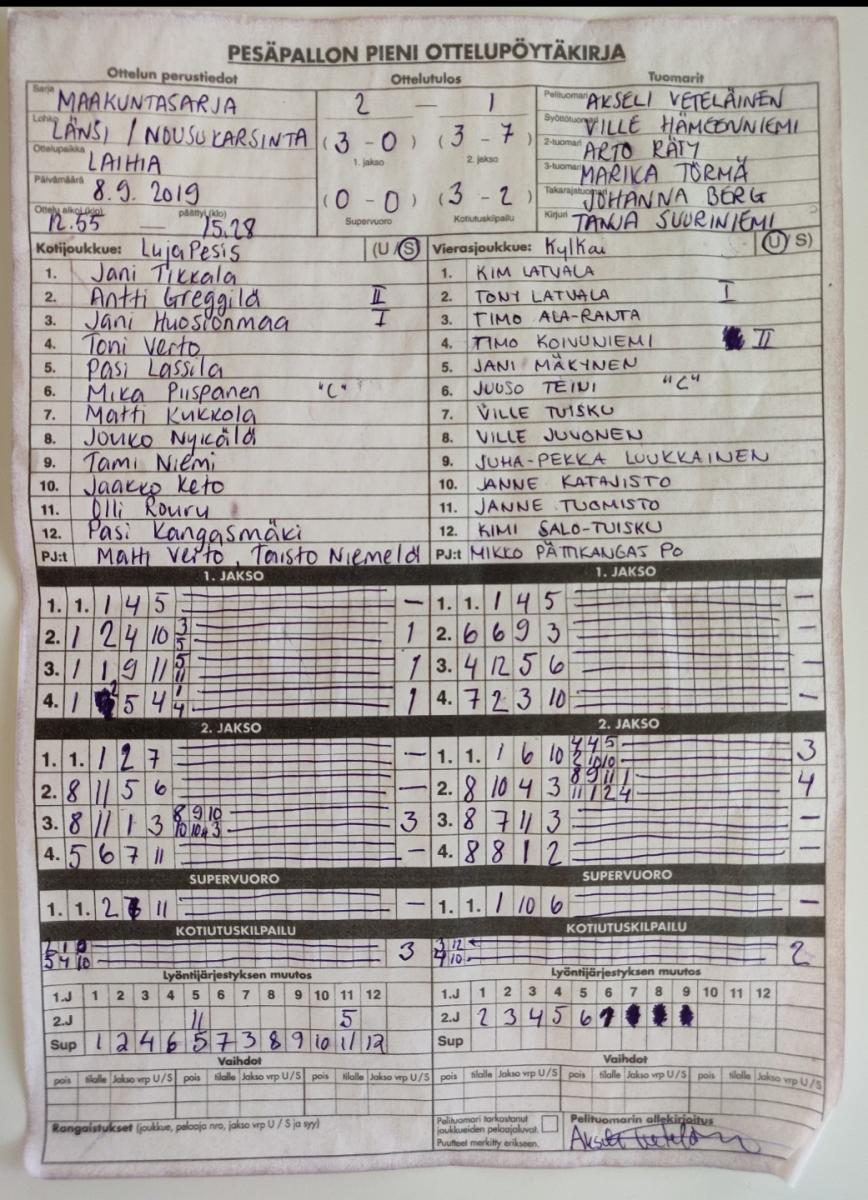 | 772341 | 7.9.2019 15:00 | Kylävuoren Kaiku | Laihian Luja-Pesis | 2-0 (3-2, 8-2) | näytä |