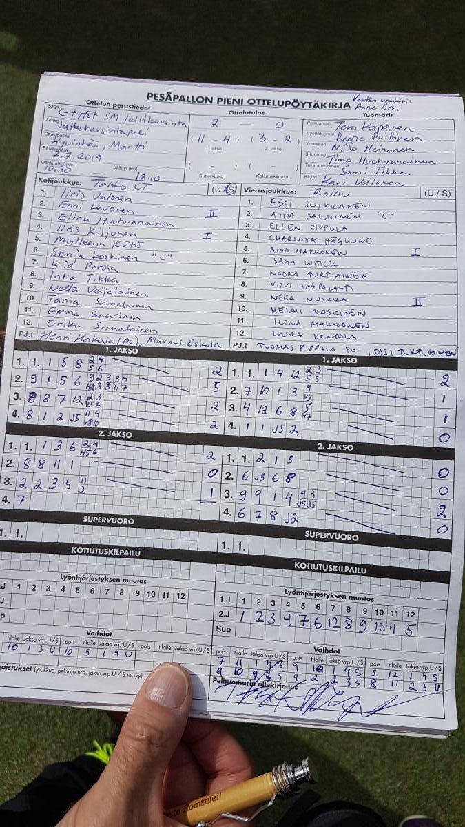 | 759885 | 11.7.2019 18:00 | Ruoveden Pirkat | Pesäkarhut, Mustat | 2-0 (5-2, 8-6) | näytä |