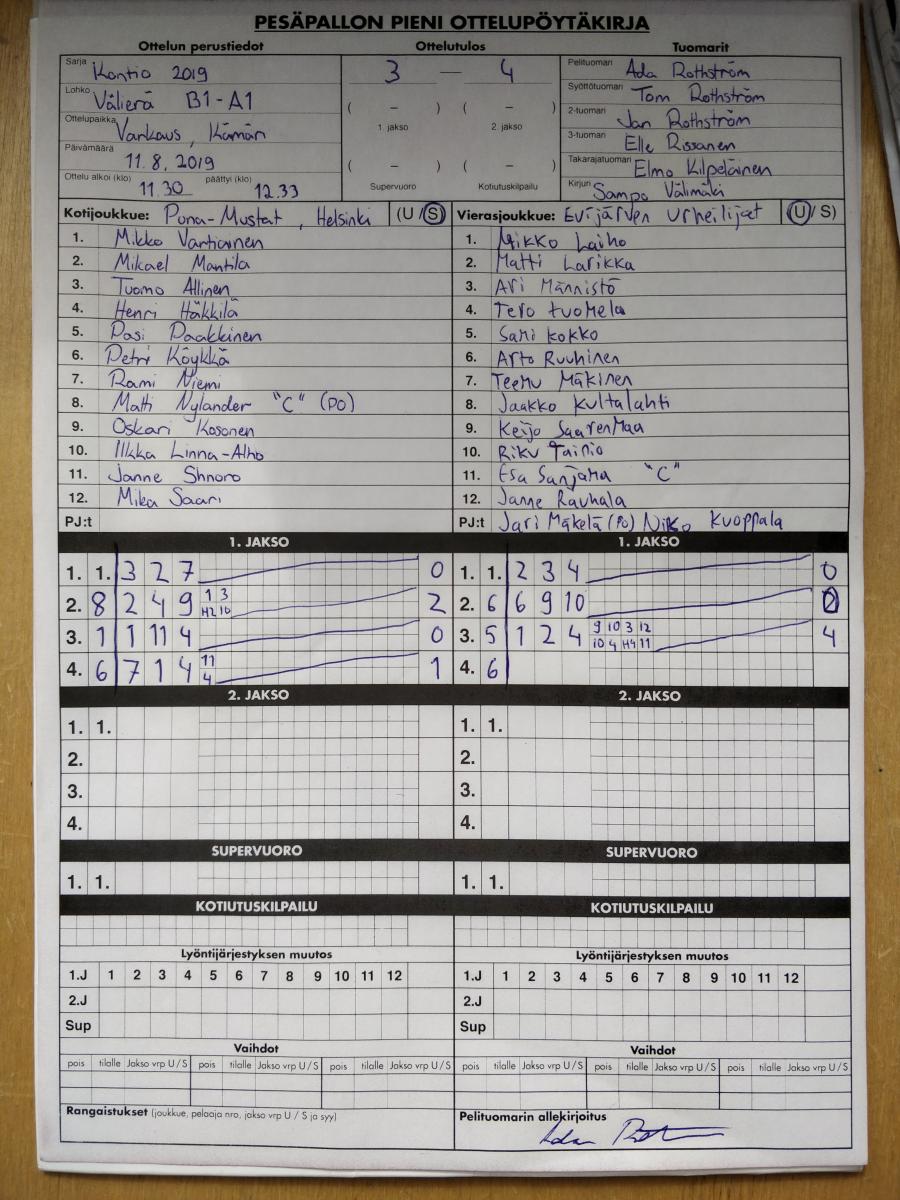 | 768258 | 11.8.2019 11:30 | Puna-Mustat, Helsinki | Evijärven Urheilijat | 3-4 | näytä |