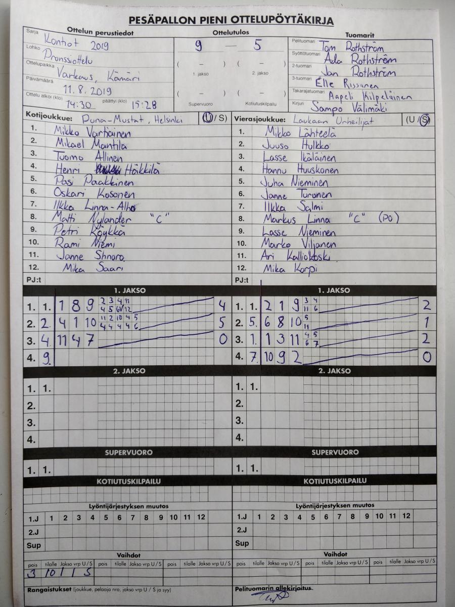 | 768274 | 11.8.2019 14:30 | Puna-Mustat, Helsinki | Laukaan Urheilijat | 9-5 | näytä |
