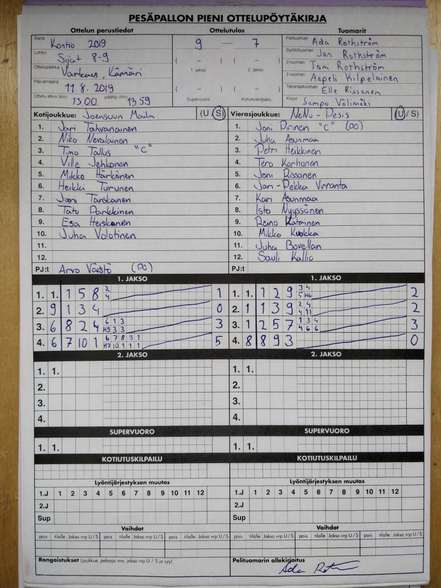 | 768313 | 11.8.2019 13:00 | Joensuun Maila | NeNu-Pesis | 9-7 | näytä |