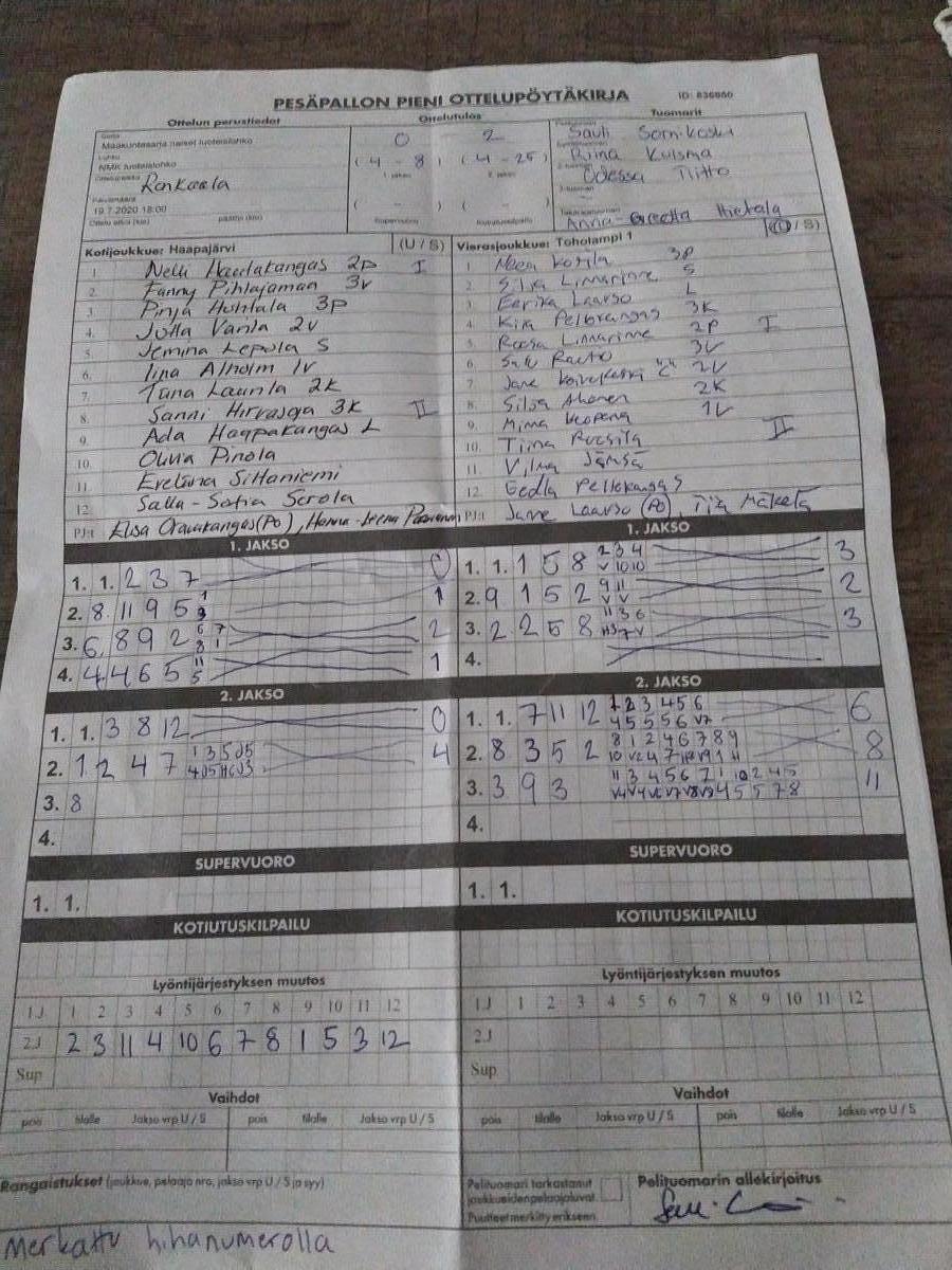 | 836850 | 19.7.2020 | Haapajärvi | Toholampi 1 | 0-2 (4-8, 4-25) | näytä |