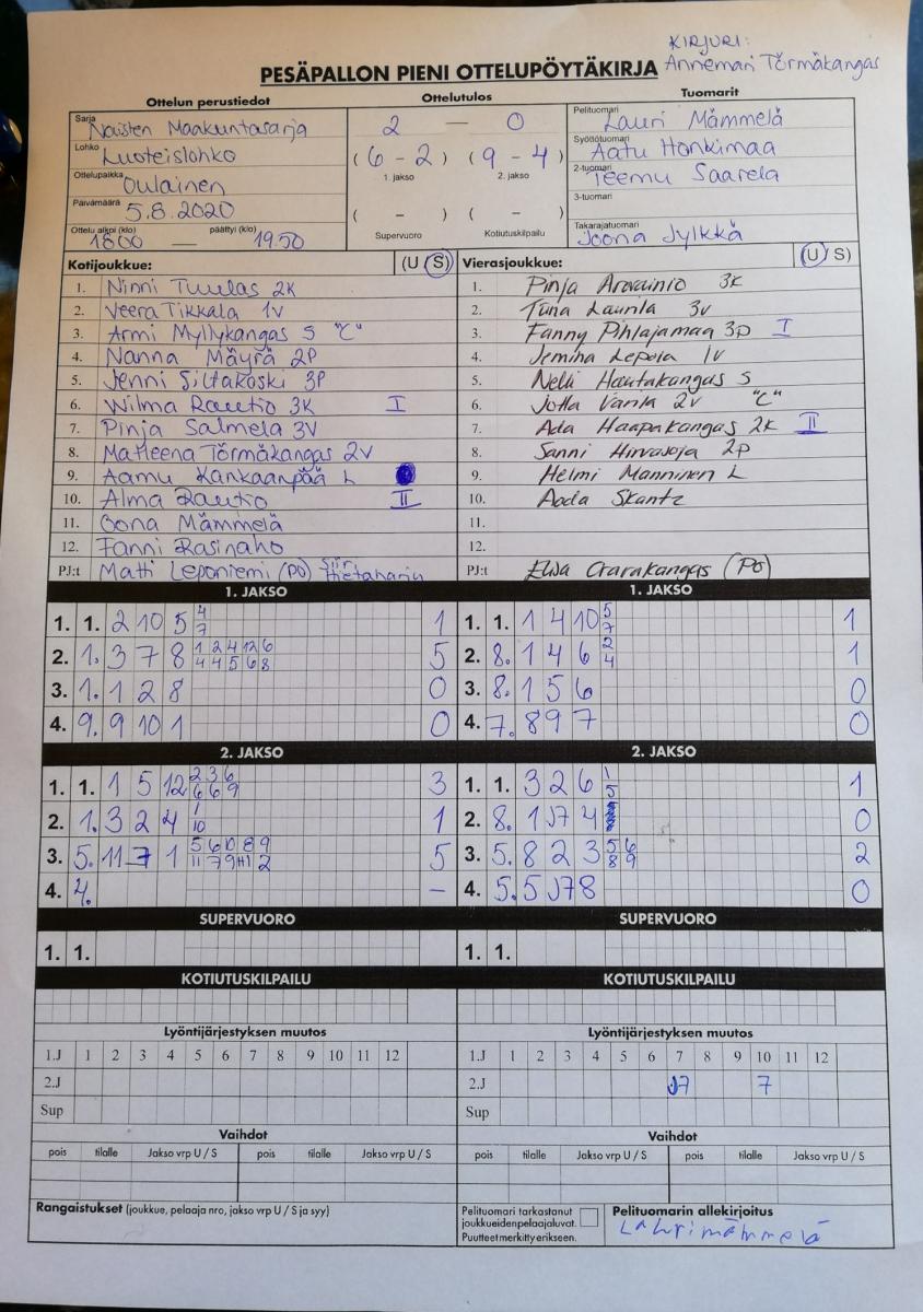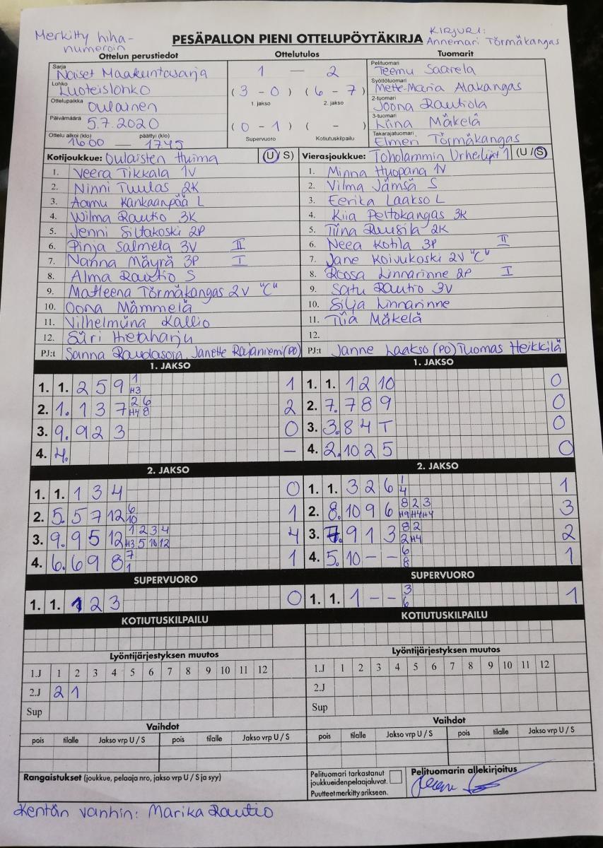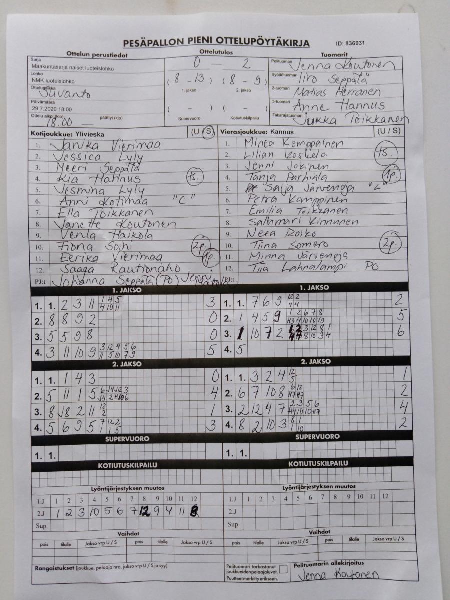 | 837008 | 13.7.2020 | Veteli | Kinnula | 0-2 (1-9, 5-14) | näytä |