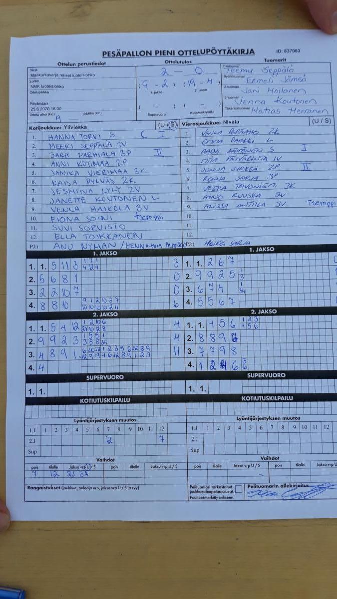 | 837053 | 25.6.2020 | Ylivieska | Nivala | 2-0 (9-2, 19-4) | näytä |